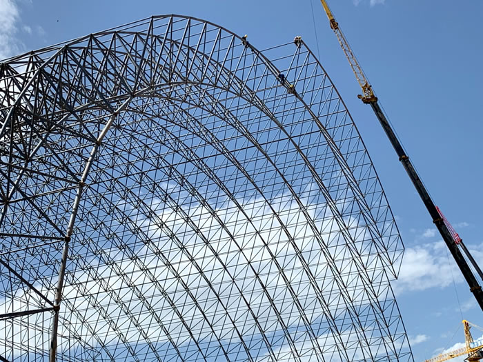 (2)网架加工前应对现场尺寸进行复测,确认无误后方可进行加工、安装;网架制作、运输、安装应遵守《空间网格结构技术规程》JGJ7-2010、《钢网架宜兴螺栓球节点》JG/T 10-2009、《钢网架宜兴螺栓球节点用高强度螺栓》 GB/T 16939-2016、《宜兴钢结构宜兴工程宜兴施工规范》 GB50755-2012、《宜兴钢结构宜兴工程宜兴施工质量验收标准》 GB50205-2020。
